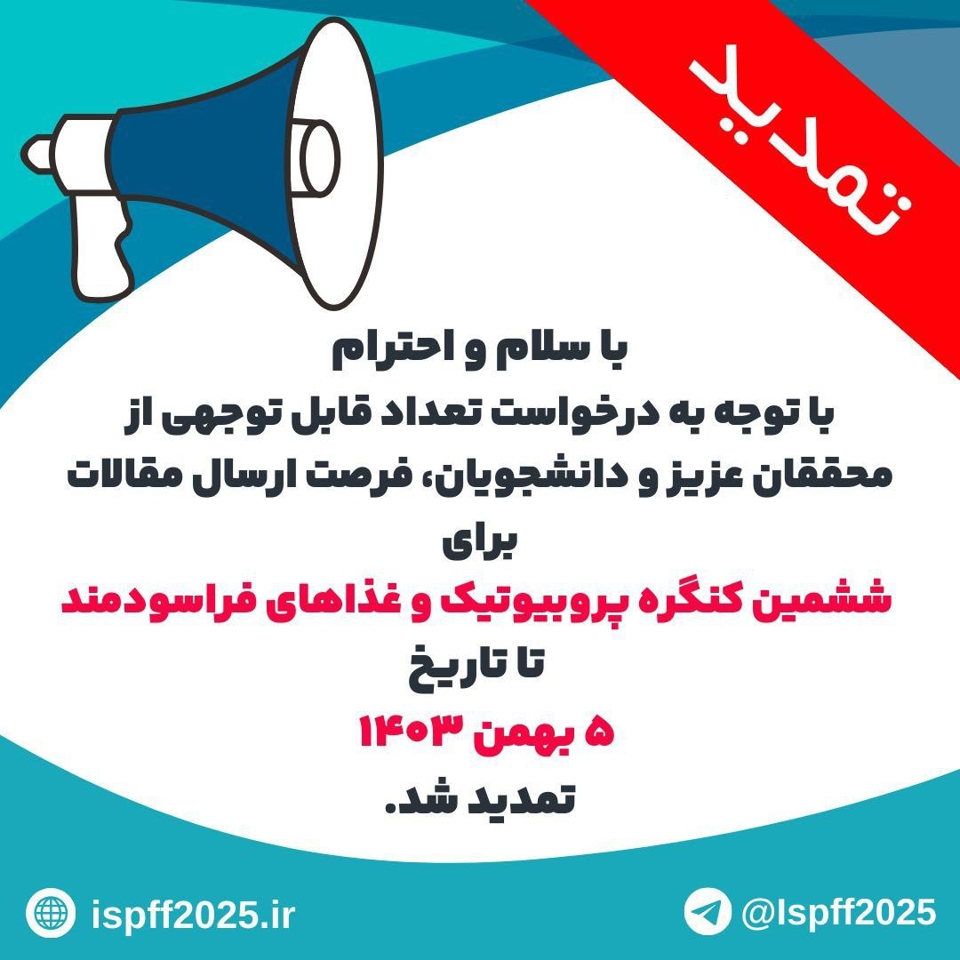 اطلاعیه شماره 5 تمدید مهلت ارسال مقالات تا 5 بهمن